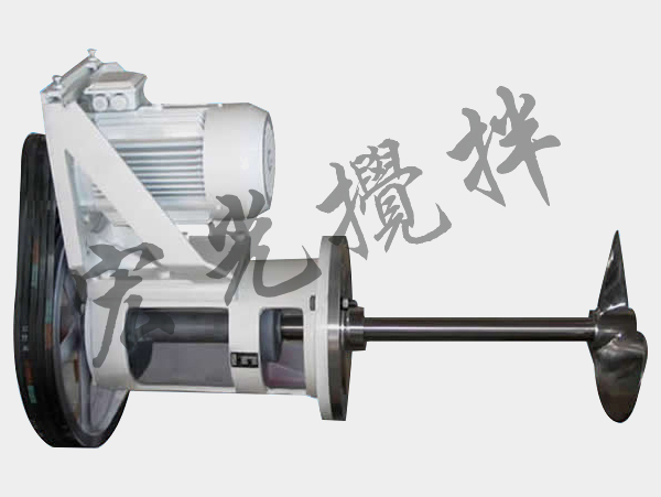 驅(qū)動(dòng)裝置采用普通電機(jī)或防爆電機(jī)直接通過(guò)皮帶輪驅(qū)動(dòng)裝置與攪拌軸聯(lián)接。攪拌軸由雙向推力軸承和水潤(rùn)滑滑動(dòng)軸承支承,具有足夠的強(qiáng)度和剛度,并具有好的穩(wěn)定性。